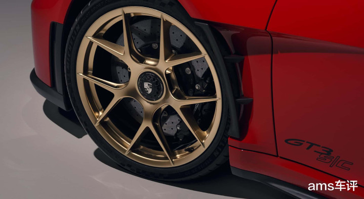 而911 GT3 S/C以1497千克(满油状态)刚好“压线”,成功跨过这一标准。它因此跻身于911 S/T、GT3 RS以及Carrera T的行列。考虑到其所搭载的大量技术配置,这意味着保时捷必须动用所有可用的轻量化手段:碳陶瓷制动系统(减重20千克)、轻量化电池(减重4千克)、镁合金轮圈(减重9千克)、碳纤维车身部件(前盖、翼子板、车门)甚至还有轻量化地毯,其中许多部件已在限量版911 S/T上使用。好消息是:911 GT3 S/C并不限量。