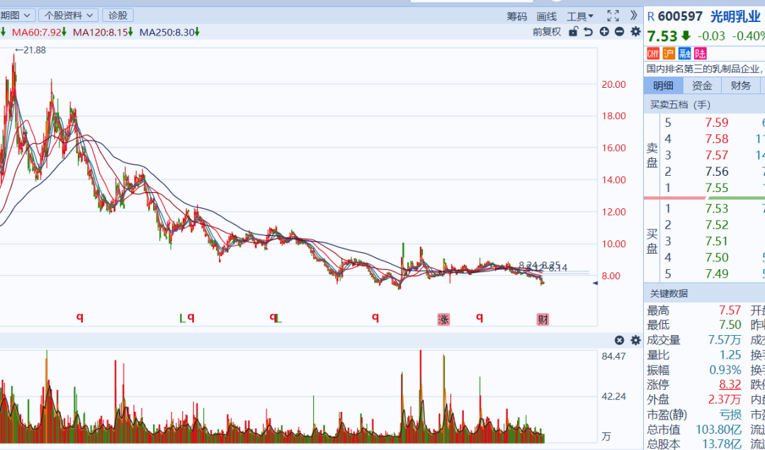 (光明乳业股价走势)