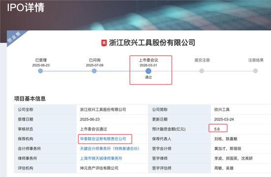 1 、深交所网站显示,欣兴工具 IPO已经在 3 月 31 日经上市委审议过会,公司的保荐人是华泰联合赚钱、律所是锦天城。